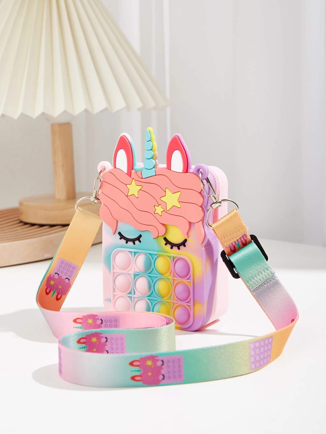 Introducing the must-have Unicorn Shaped Bubble Pop Fidget Toy Bag, designed to delight both kids and grown-ups! Featuring a magical unicorn silhouette and eye-catching, vibrant rainbow colors, this bag combines fashion and fun in one unique accessory. The soft, tactile bubble pop surface doubles as a soothing fidget toy, offering hours of sensory enjoyment wherever you go. Its spacious interior easily stores small treasures, snacks, or school essentials, while the detachable, adjustable strap ensures comfortable and versatile wear. Whether for playdates, parties, or everyday adventures, this enchanting unicorn bag is the perfect gift for unicorn lovers and pop-it fans alike. Available in rainbow or pastel color options.