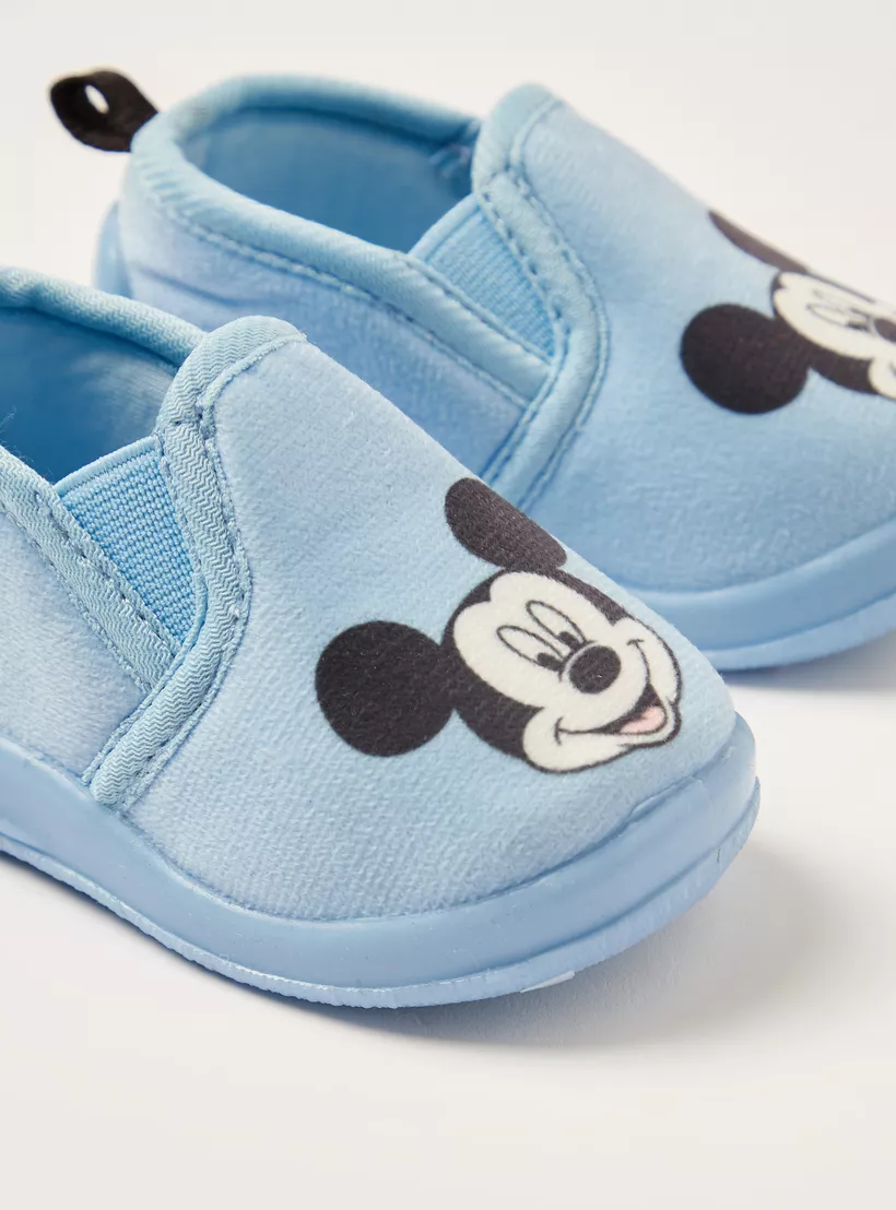Disney Mickey Mouse Print Slip-On Booties with Pull Tabs