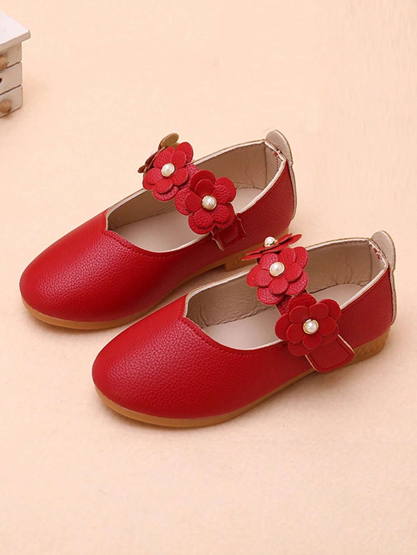 Adorable red toddler girls’ walking shoes crafted from soft leather with floral accents. Designed for comfort, support, and style, perfect for playdates, outings, or preschool.