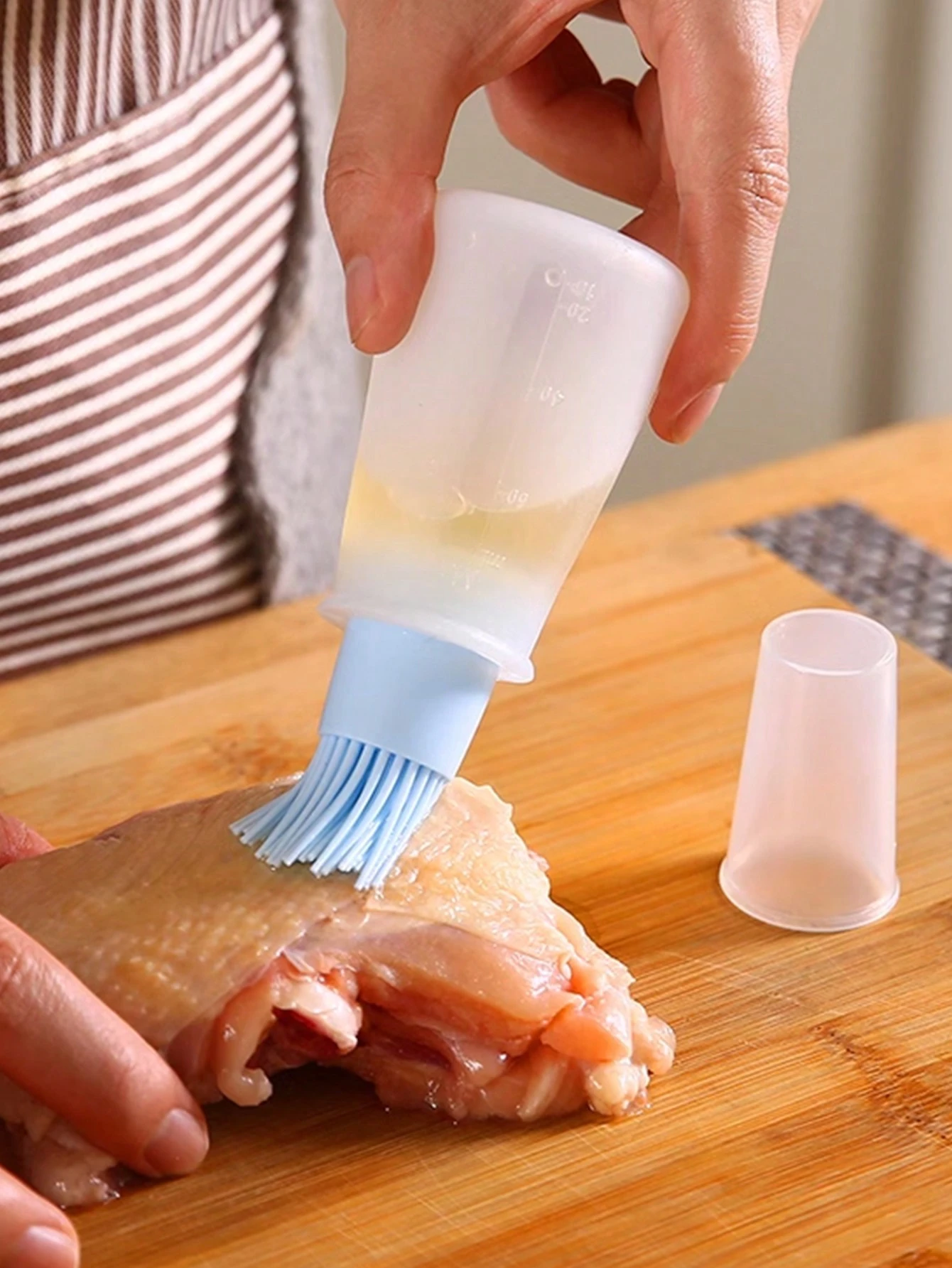 Elevate your cooking experience with our premium silicone oil basting brush, featuring a convenient refillable bottle and durable, heat-resistant bristles that can handle high temperatures. Effortlessly and evenly spread oil, marinades, or sauces on your favorite foods when grilling, baking, or frying. Designed for effortless use and quick cleaning, this must-have kitchen tool keeps your hands clean and gives you perfect results every time. Available in multiple vibrant colors to match your kitchen style.
